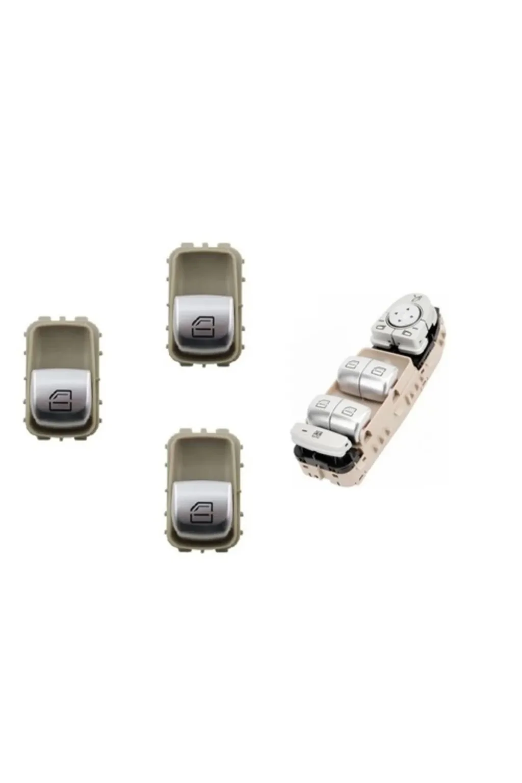 Mercedes C200 serisi araçlar için özel olarak tasarlanmış, 2014; 2020 model yılları kapsayan bej kasa uyumlu cam açma düğmesi seti; Universal uyumluluk özelliği sayesinde farklı marka ve modellerde de kullanılabilir, böylece aracınızın camlarını kolayca açıp kapatabilirsiniz; Dayanıklı malzemeden üretilmiş olup, uzun ömürlü kullanım sunar ve sık değiştirme ihtiyacını ortadan kaldırır; Kolay montaj imkanı sayesinde ekstra araç içi aletlere ihtiyaç duymadan, hızlı ve pratik bir şekilde montaj yapabilirsiniz;